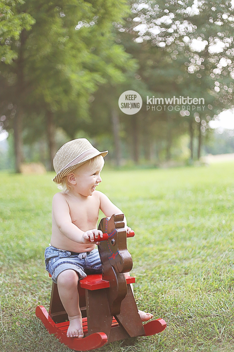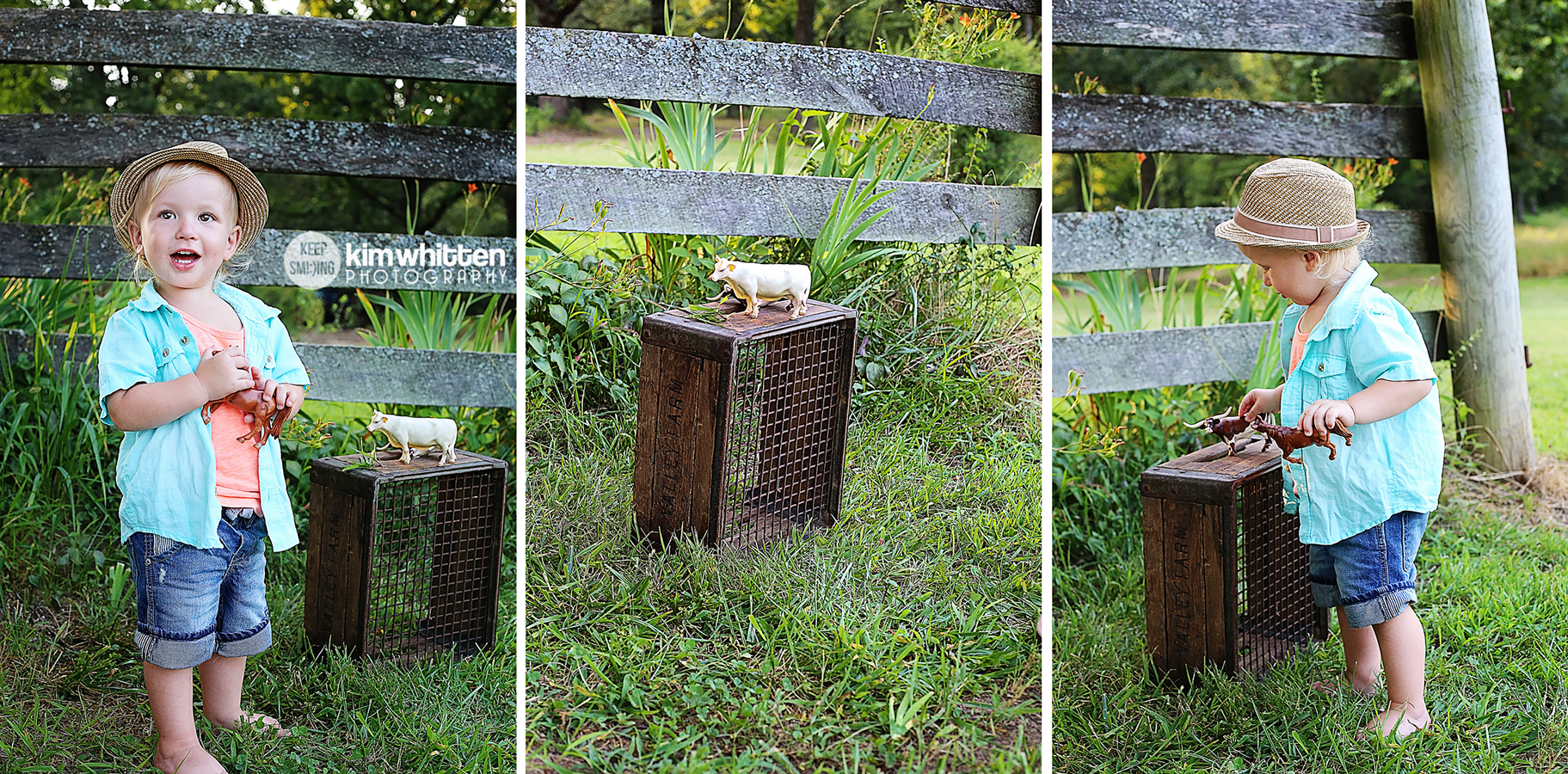 This kiddo is all country boy! We had our photo session on my family's farm and they were cutting hay in the river bottom during our shoot. He kept talking about the "tractors" and to keep him appeased, he played with his horses and cows. I think city living is out of the question for Eli!